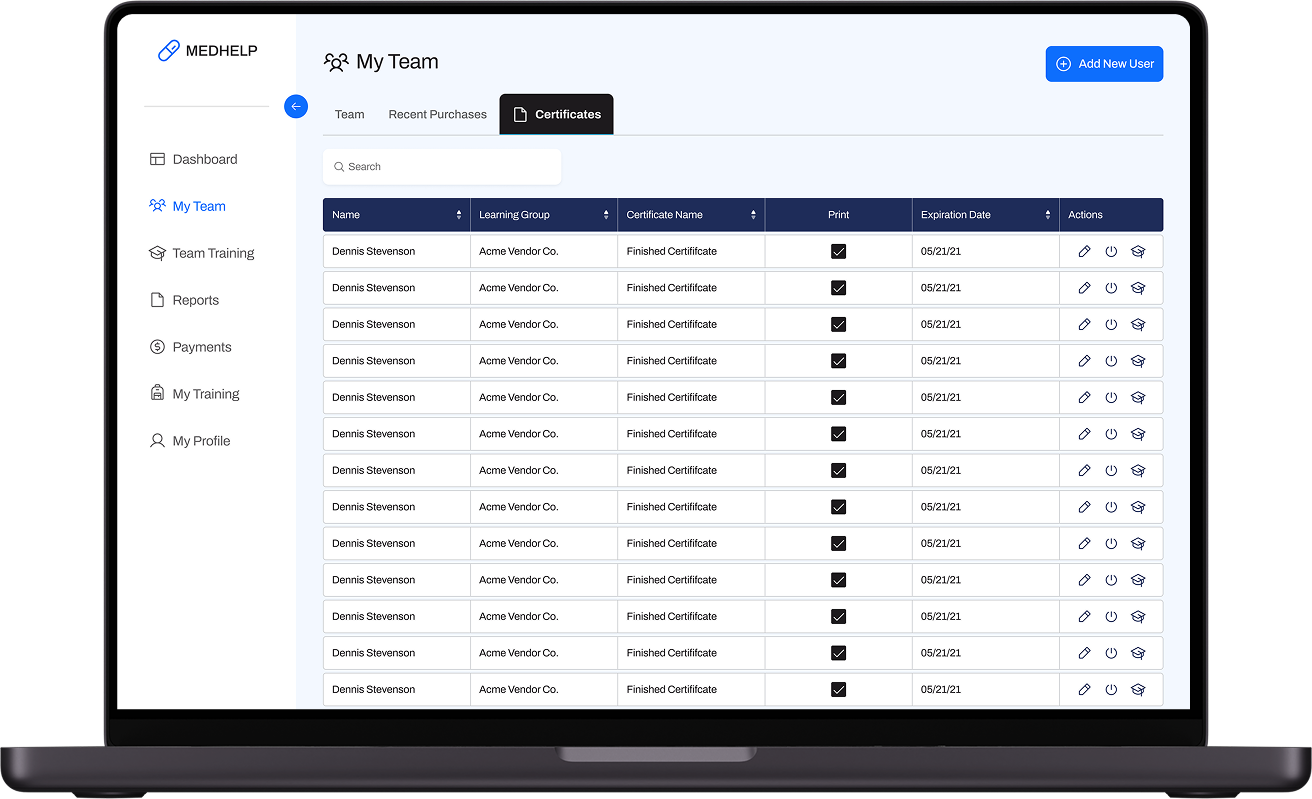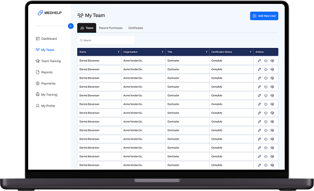 For contracting company employees, the platform provided a dedicated user portal, allowing them to log in, complete coursework, and monitor their certification status with ease. At the same time, company leadership had access to powerful tools to manage employee courses, track team progress, and oversee license renewals, ensuring compliance and operational efficiency.
